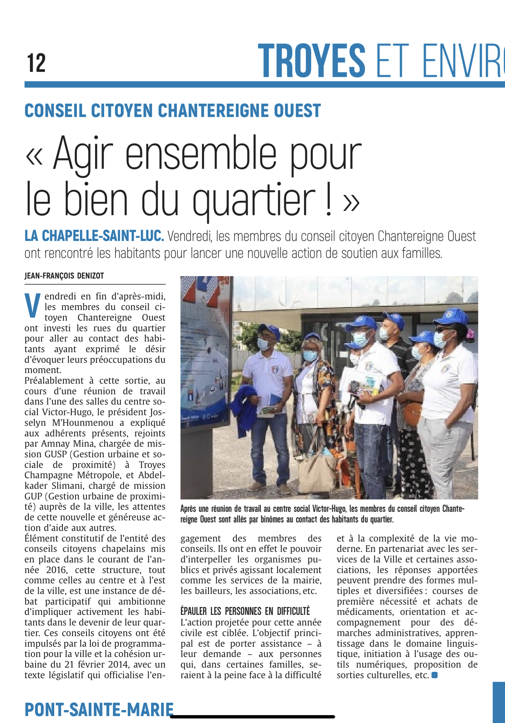 Article de l'Est Éclair sur notre action solidaire de cette année 2021